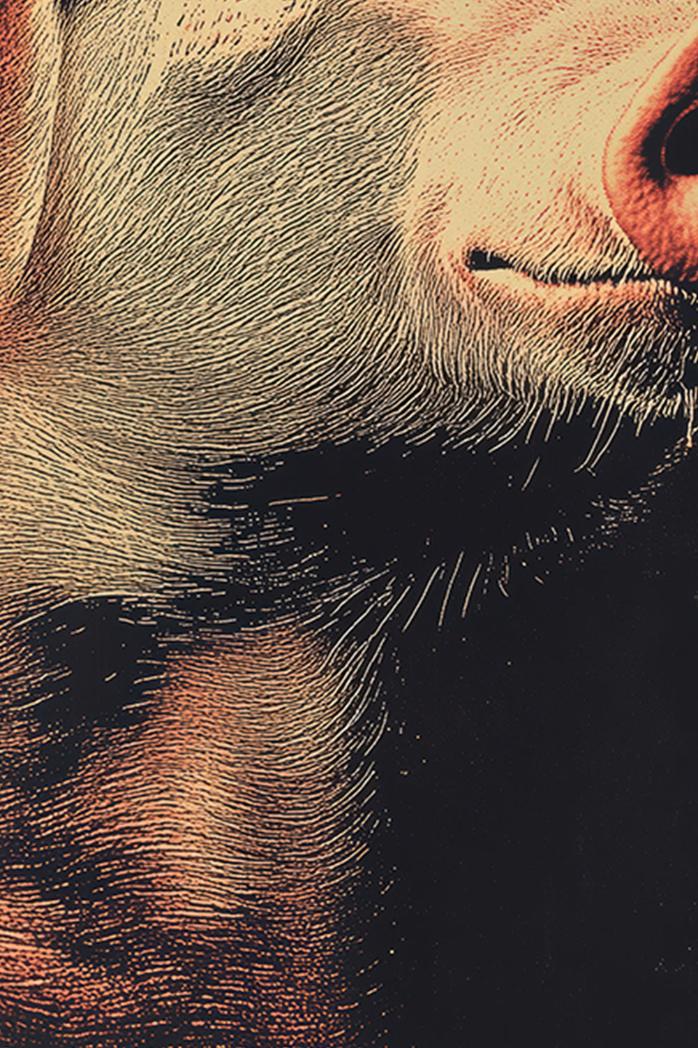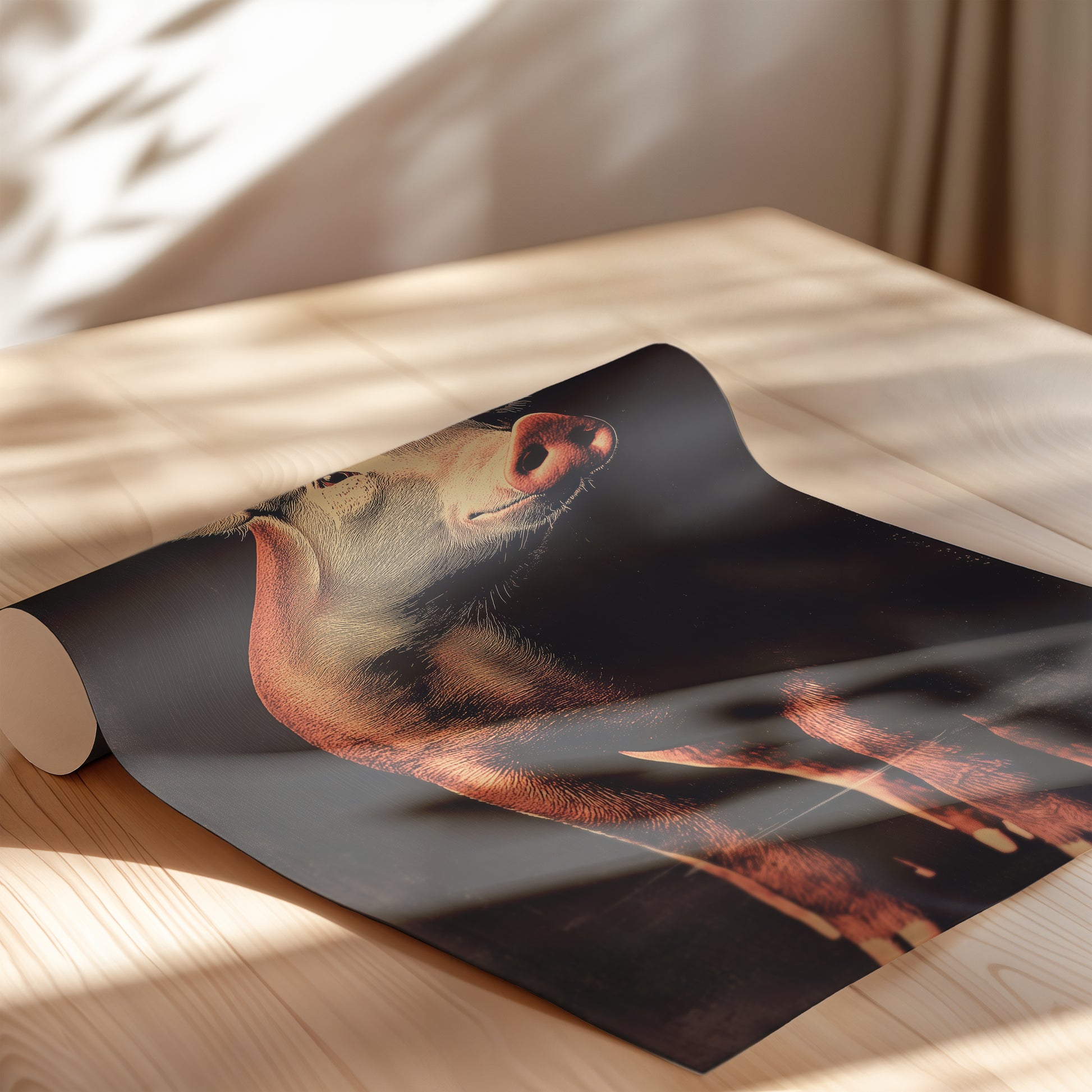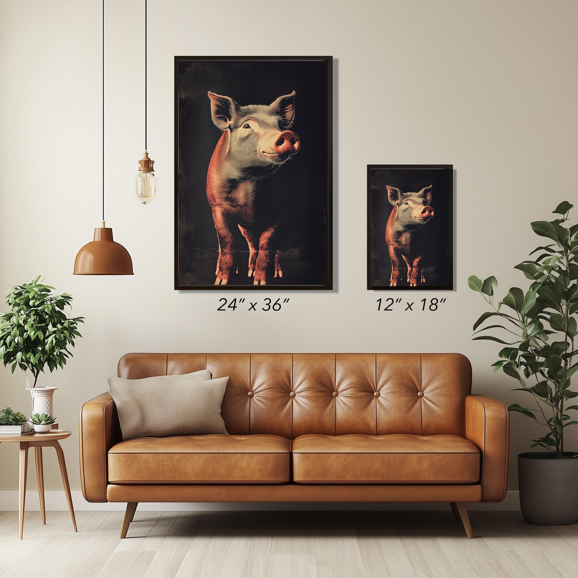 This print showcases the pig with a lively and endearing expression, its soft pink tones illuminated against a rich, textured background. The fine details of the pig’s snout, ears, and gentle eyes are highlighted with precision, offering a lifelike portrayal that captures both its personality and natural beauty. The playful upward tilt of the head adds an element of whimsy, balanced by the refined lighting and shadowing throughout the composition. Produced on premium matte paper, the print captures every nuance of the pig’s features with clarity and depth. The warm, natural tones are preserved for long-lasting vibrancy, ensuring the image retains its visual impact over time. Blending the charm of the subject with a vintage-inspired design, this piece serves as a delightful yet sophisticated addition to spaces that value distinctive imagery. The pig’s depiction resonates with both playfulness and elegance.